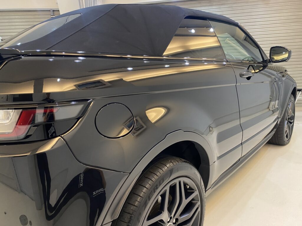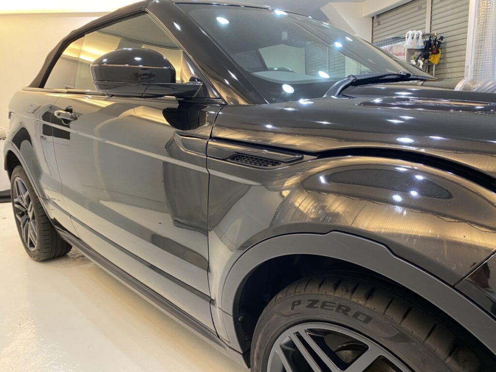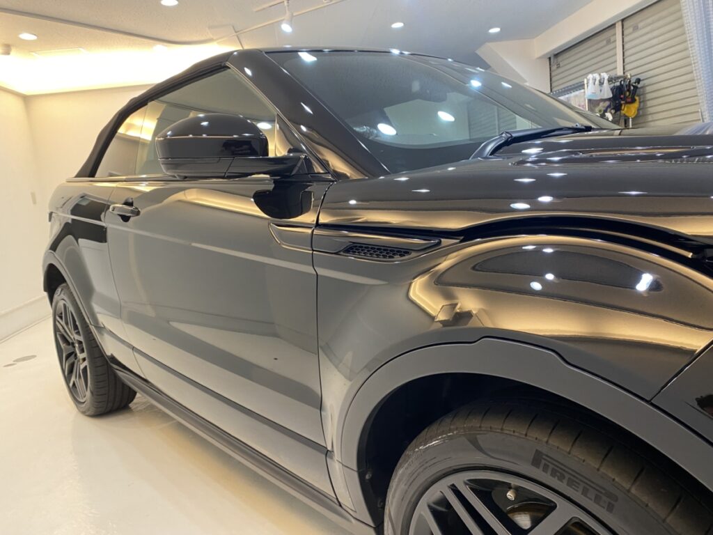 イヴォーク コンバーチブルのように曲面が多く、塗装の層が厚い車両では、研磨量とコンパウンドの粒度選定がとても重要。